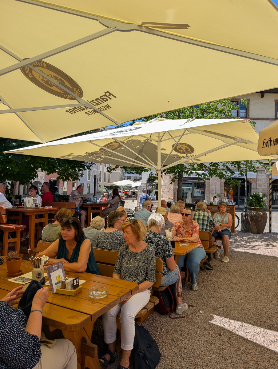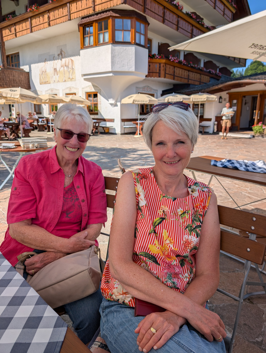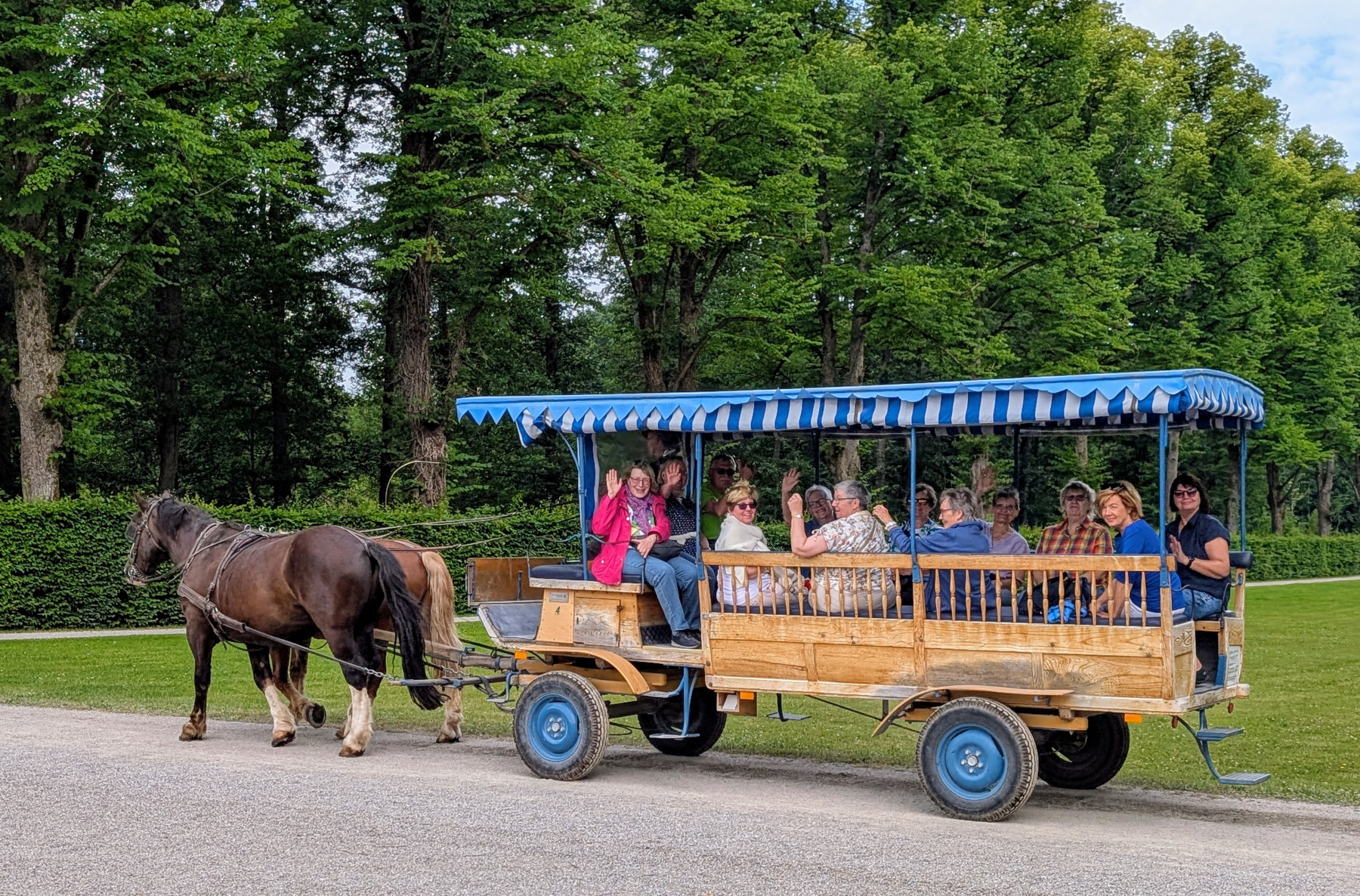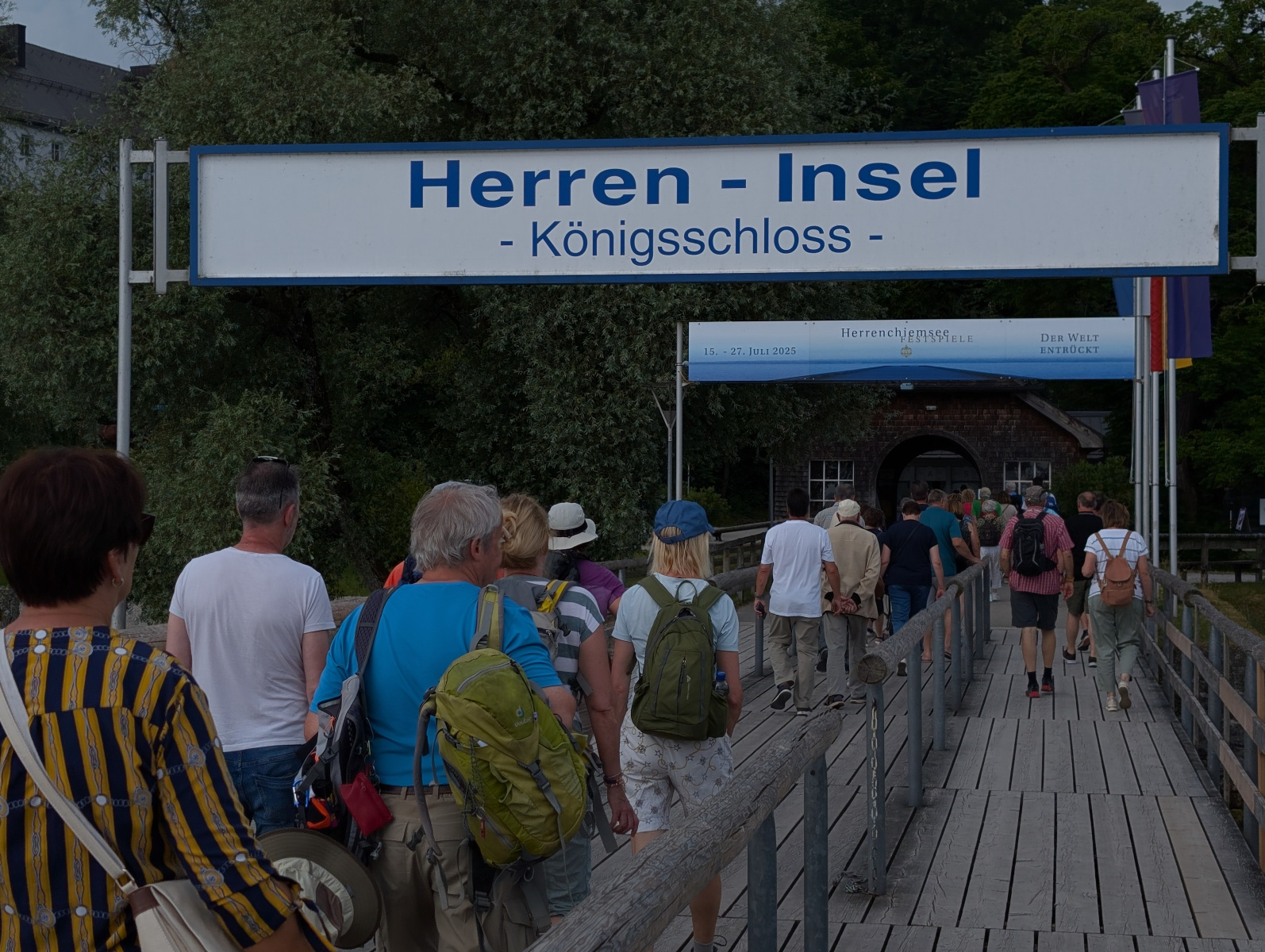 Vor der Abfahrt standen zwei Geburtstagsständchen an; unsere Akkordeonspielerin sorgte dabei für Stimmung. Über Prien setzten wir zur Herreninsel über und ließen uns im Palast Herrenchiemsee vom „Bayerischen Märchenkönig“ Ludwig II. verzaubern. Weiter ging es zur kleineren, stilleren Fraueninsel, deren Klosterkirche und Gärten idyllisch wirkten – bis ein heftiges Sommergewitter losbrach. Wir suchten Unterschlupf im Klosterladen, verkosteten selbstgemachten Klosterlikör und warteten geduldig. Kaum verzogen sich die Wolken, spazierten wir durch vom Regen glitzernde Gassen zurück zum Anleger. Die dramatische Stimmung sorgte für eindrucksvolle Erinnerungsfotos.