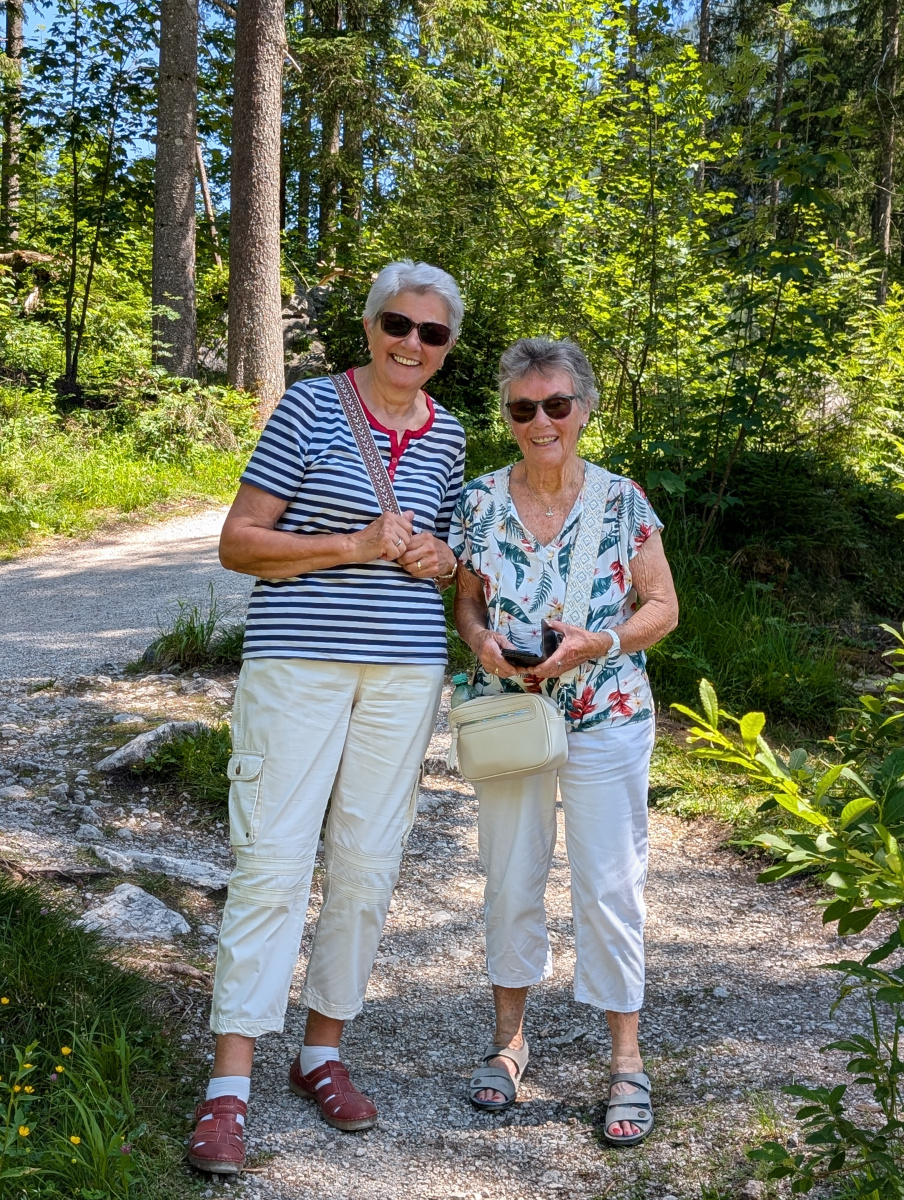 Ein Teil der Gruppe besichtigte die Max-Aicher-Arena, staunte über Eisschnelllauf-Olympiasiegerzeiten und durfte sogar kurz aufs gelobte Eis. 25 Wanderfreudige starteten indes zur scheinbar gemütlichen Runde um den Falkensee. Doch der ausgeschilderte „Spazierweg“ entpuppte sich als 12-Kilometer-Anstrengung mit Steigungen und praller Sonne – am Ende waren vier Stunden vergangen. Die Belohnung im Kaiserschmarrn-Café schmeckte himmlisch. Abends animierten zwei Musikanten im Hotel zum Mitsingen; selbst zurückhaltende Teilnehmer klopften begeistert auf Schellenringe und Cajóns.