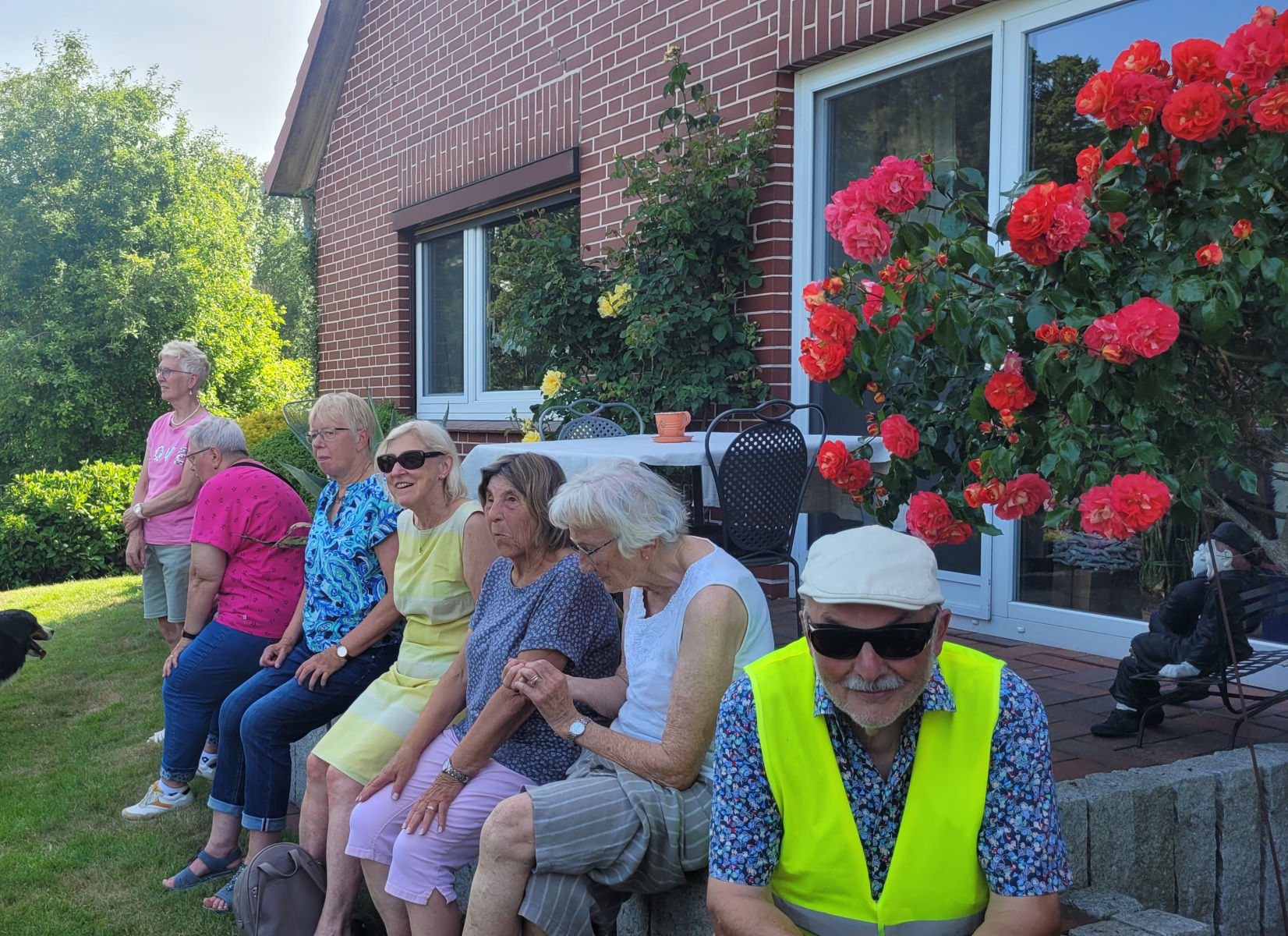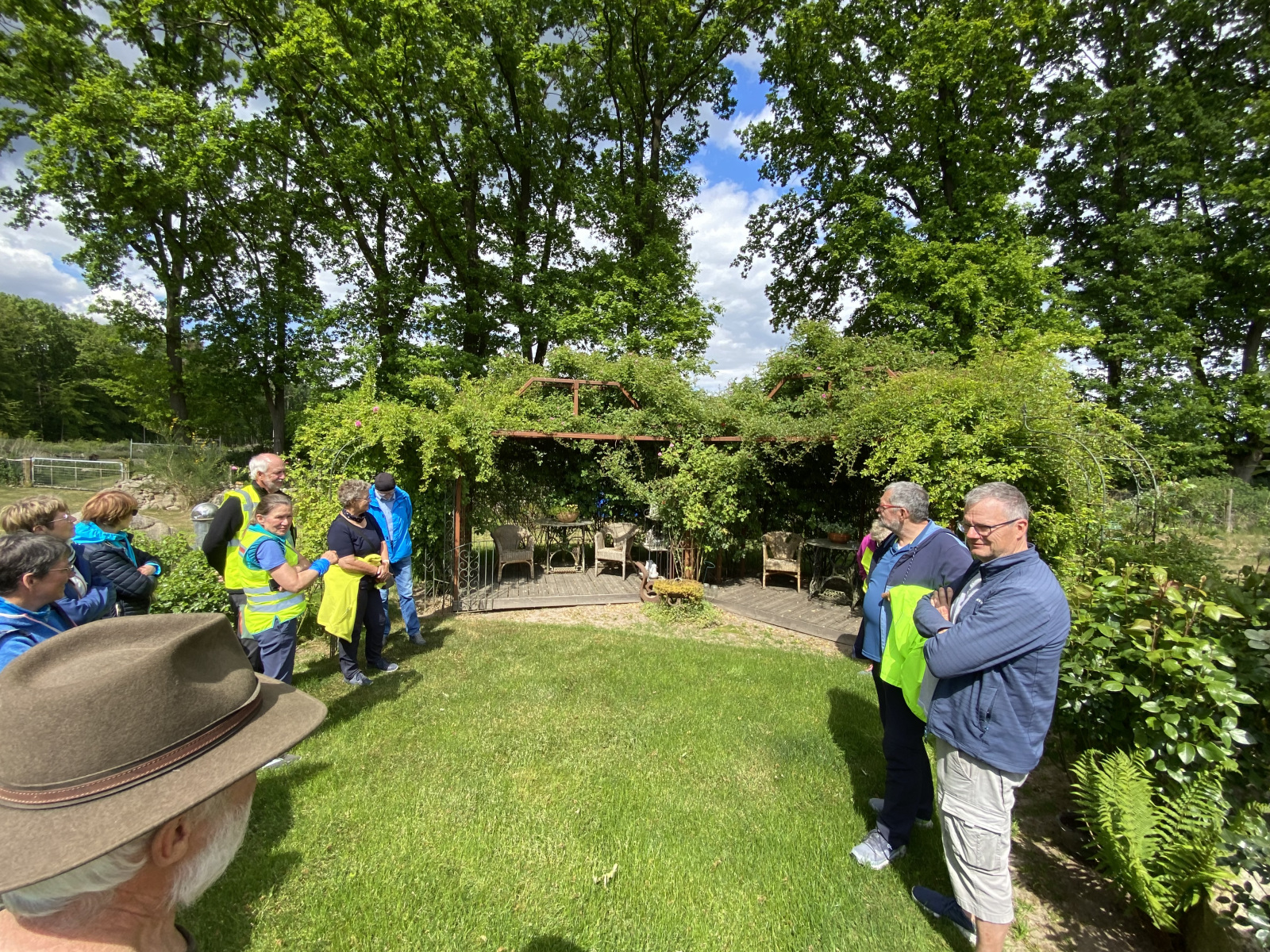 Anschließend ging es über schöne Feldwege weiter nach Jardinghausen, wo uns Ursel Dück in ihren liebevoll angelegten Garten mit vielen besonderen Pflanzen, duftenden Rosen und lauschigen Plätzen mit Blick auf den idyllischen Pferdehof einlud.