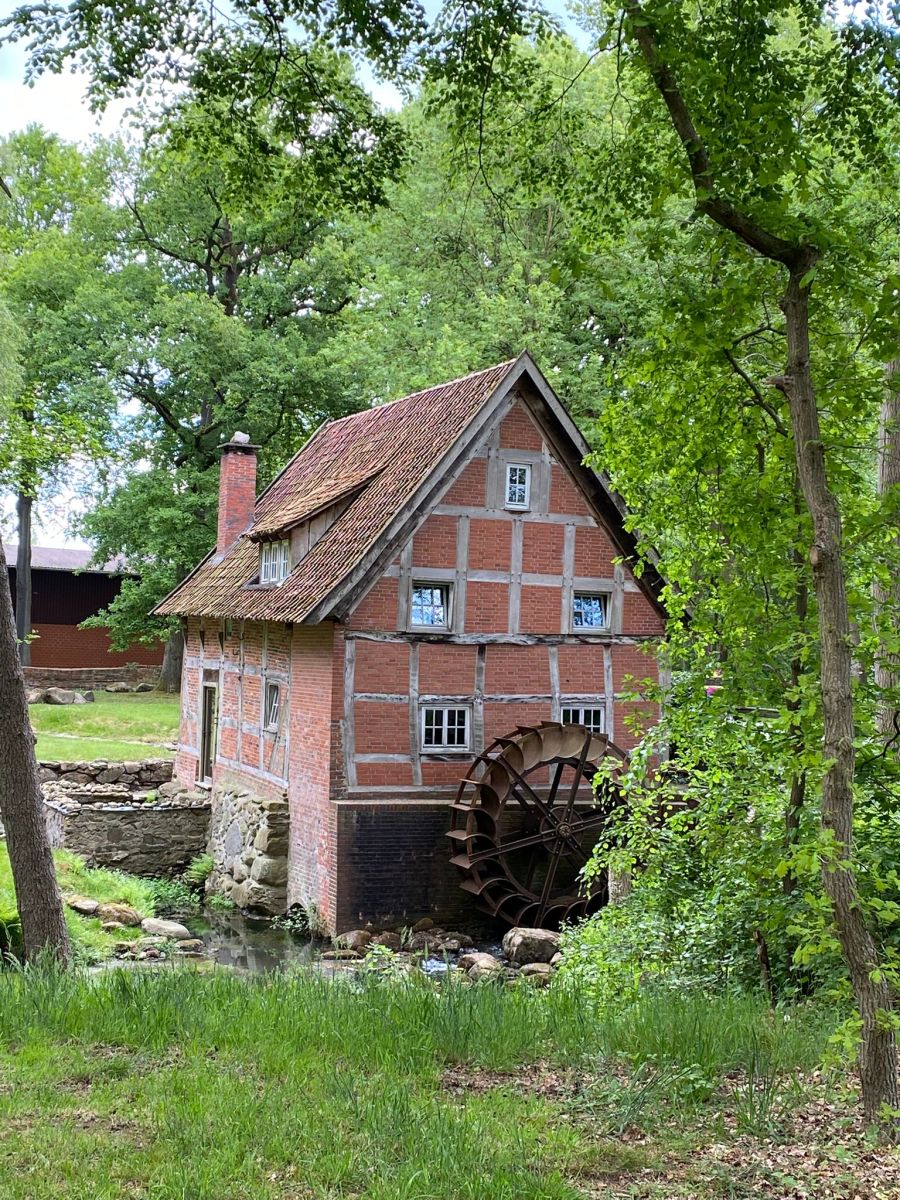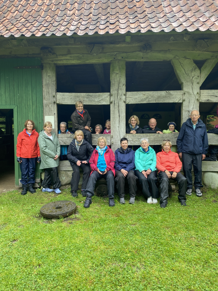 Am letzten Tag fuhren wir über die Ahlhorner Teiche nach Heinefelde, wo wir am Dorfplatz mit toll restaurierter Wassermühle und Scheune kurz Pause machten. Zum letzten Highlight der Reise fuhren wir durch Dötlingen nach Simmerhausen zum Stein- und Wassergarten der Familie Krüger. Noch warmer Butterkuchen, 11.000 qm Gartenlandschaft und ein tolles Gastgeberehepaar erwarteten uns. Es war einfach nur herrlich, die Geschichten zu den vielen liebevoll gesammelten alten Gegenständen und selbstgebauten Sitzecken zu hören.