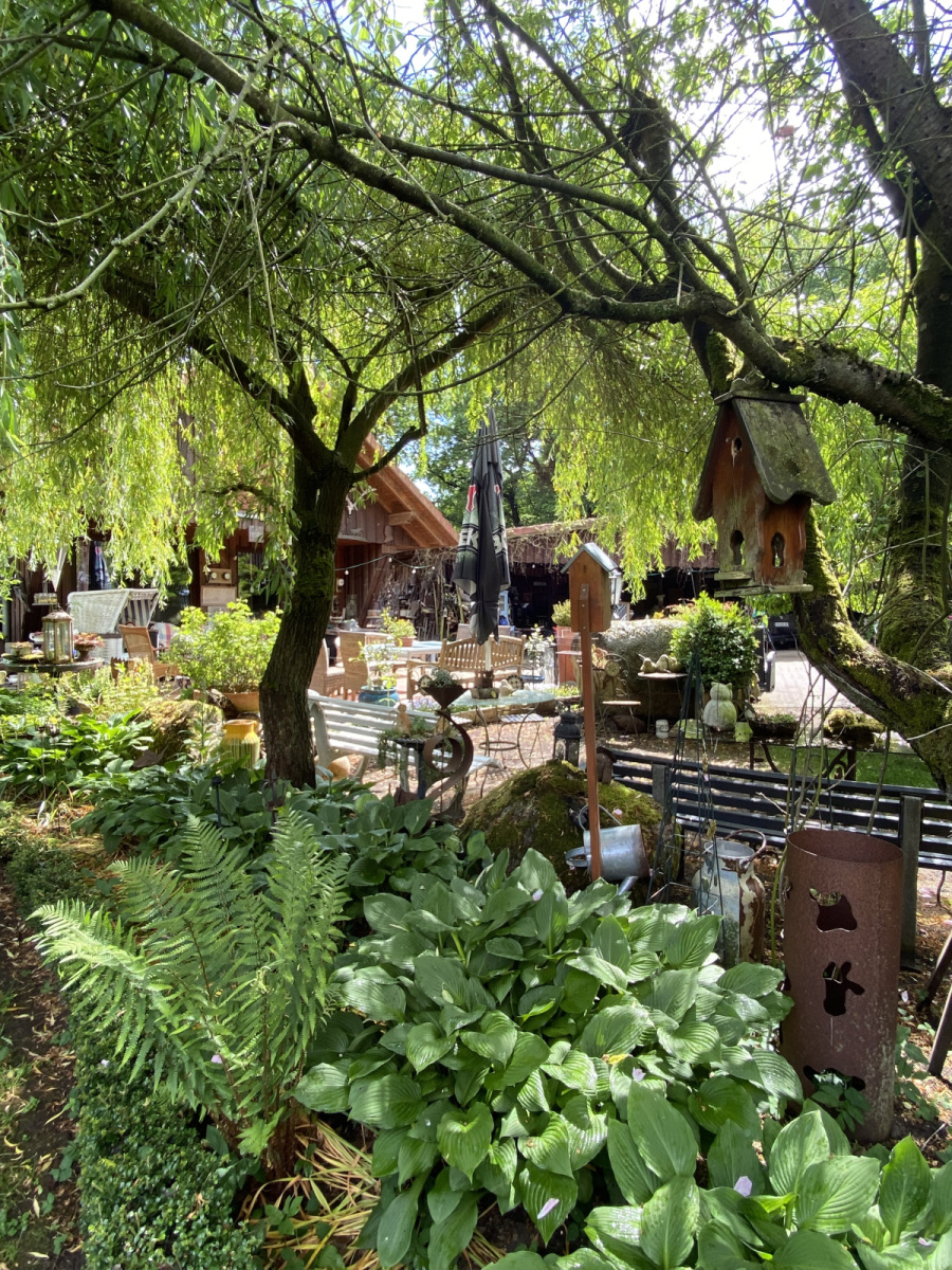 Der erste Stopp war bei Annette und Helmut Müller in Bensen. Ihr weitläufiger Garten beeindruckte uns mit vielen verwunschenen Ecken, die zum Verweilen einluden, selbst gestalteten Deko-Elementen und liebevoll bepflanzten Beeten.