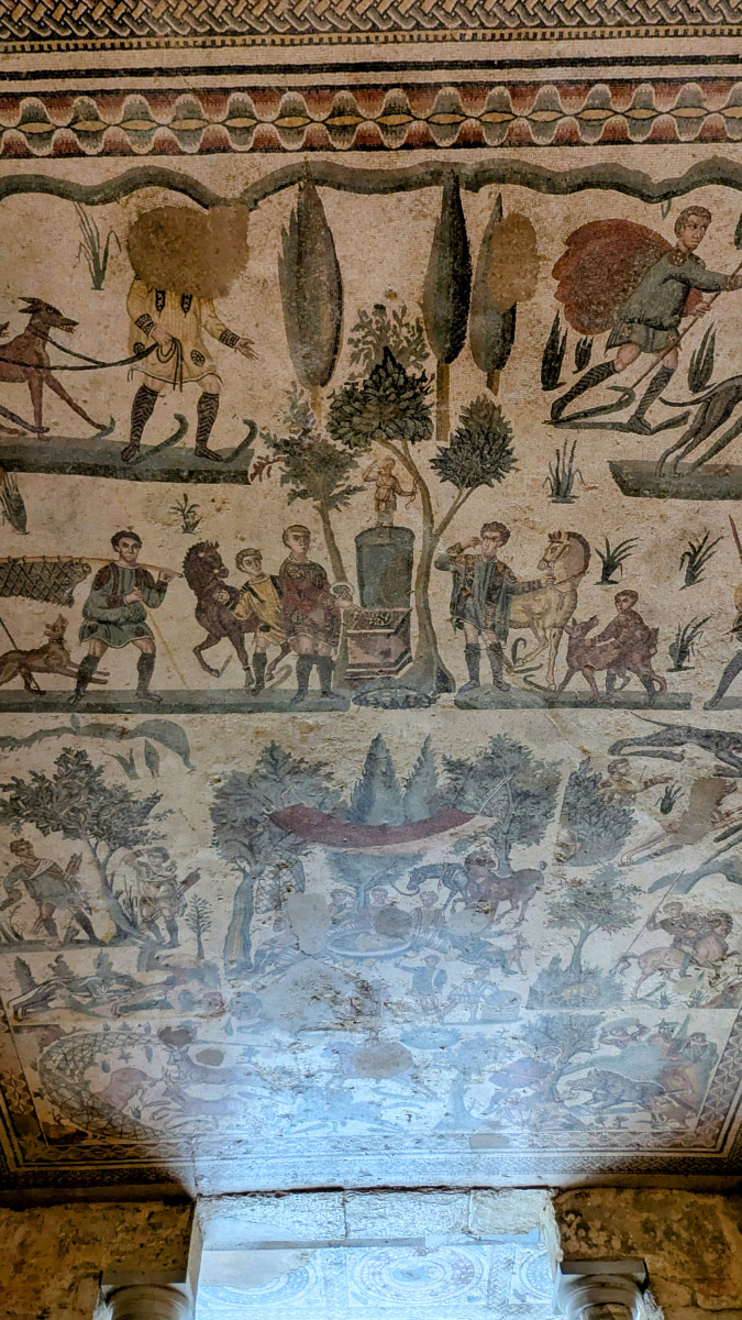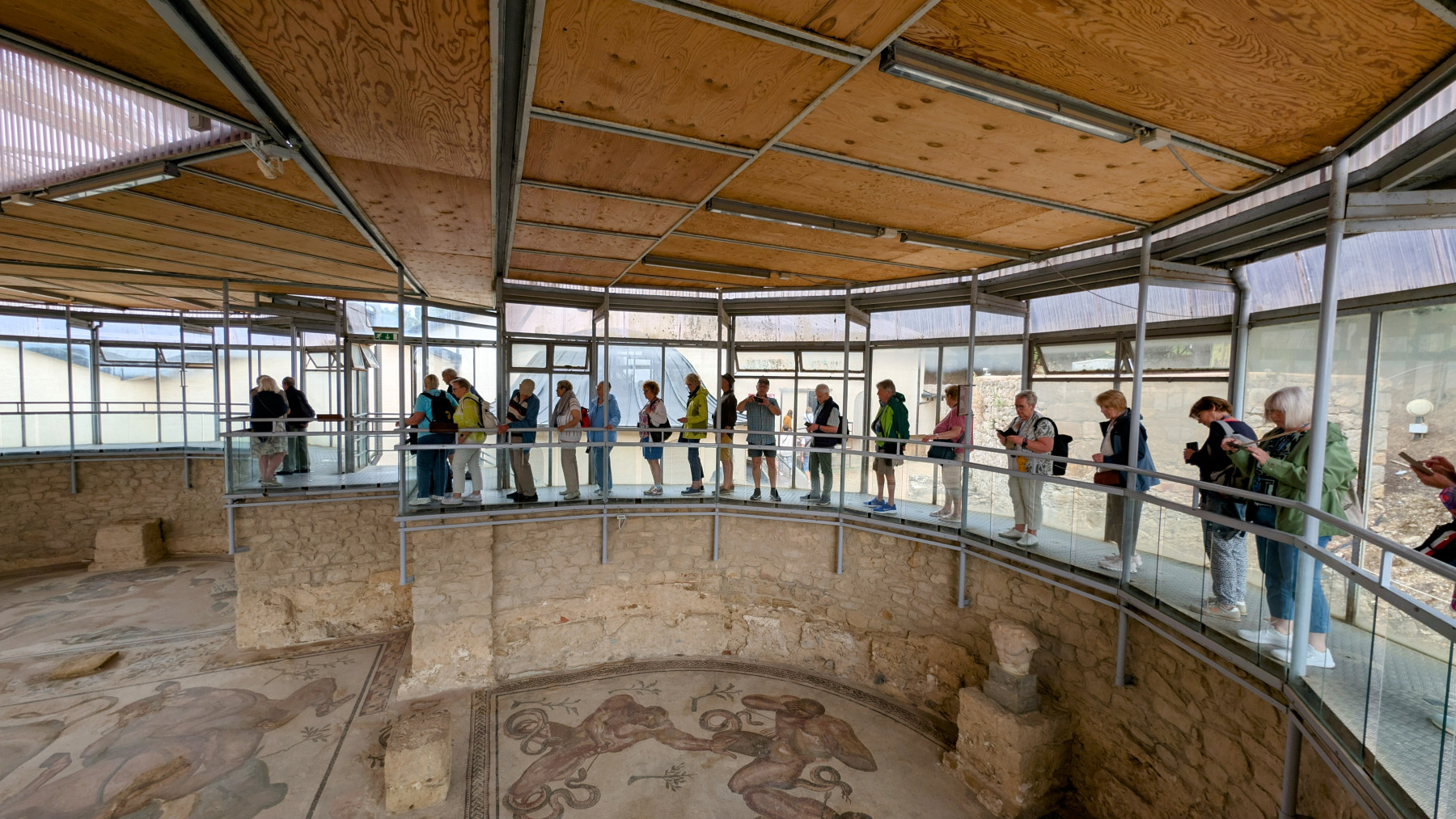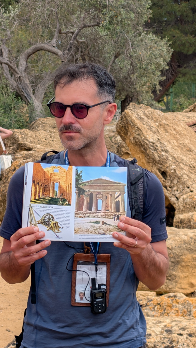 Frisch gestärkt starteten wir in den vierten Tag mit einem Besuch der Villa Romana del Casale bei Piazza Armerina. Die farbenprächtigen Bodenmosaike, allen voran die berühmten “Bikinimädchen”, ließen uns staunen – Fitness und Lebensfreude schienen schon im antiken Rom keine unbekannten Themen gewesen zu sein. Anschließend brachen wir auf nach Agrigent, der sogenannten “Schönsten Stadt der Sterblichen” ganz im Sinne Pindars. Im weiten Tal der Tempel wandelten wir zwischen den dorischen Säulen, während Don Camillo die Sagen und Legenden der antiken Götter zum Leben erweckte. Unser Spaziergang dehnte sich auf die idyllischen Kolymbetra-Gärten aus, wo wir uns unter duftenden Orangen- und Mandelbäumen bei einem rustikalen Picknick stärkten. Am Abend bezogen wir das Landhaus Casale Margherita in den Sikanischen Bergen und ließen den Tag bei einem leckeren rustikalen Hauptgerichten ausklingen.
