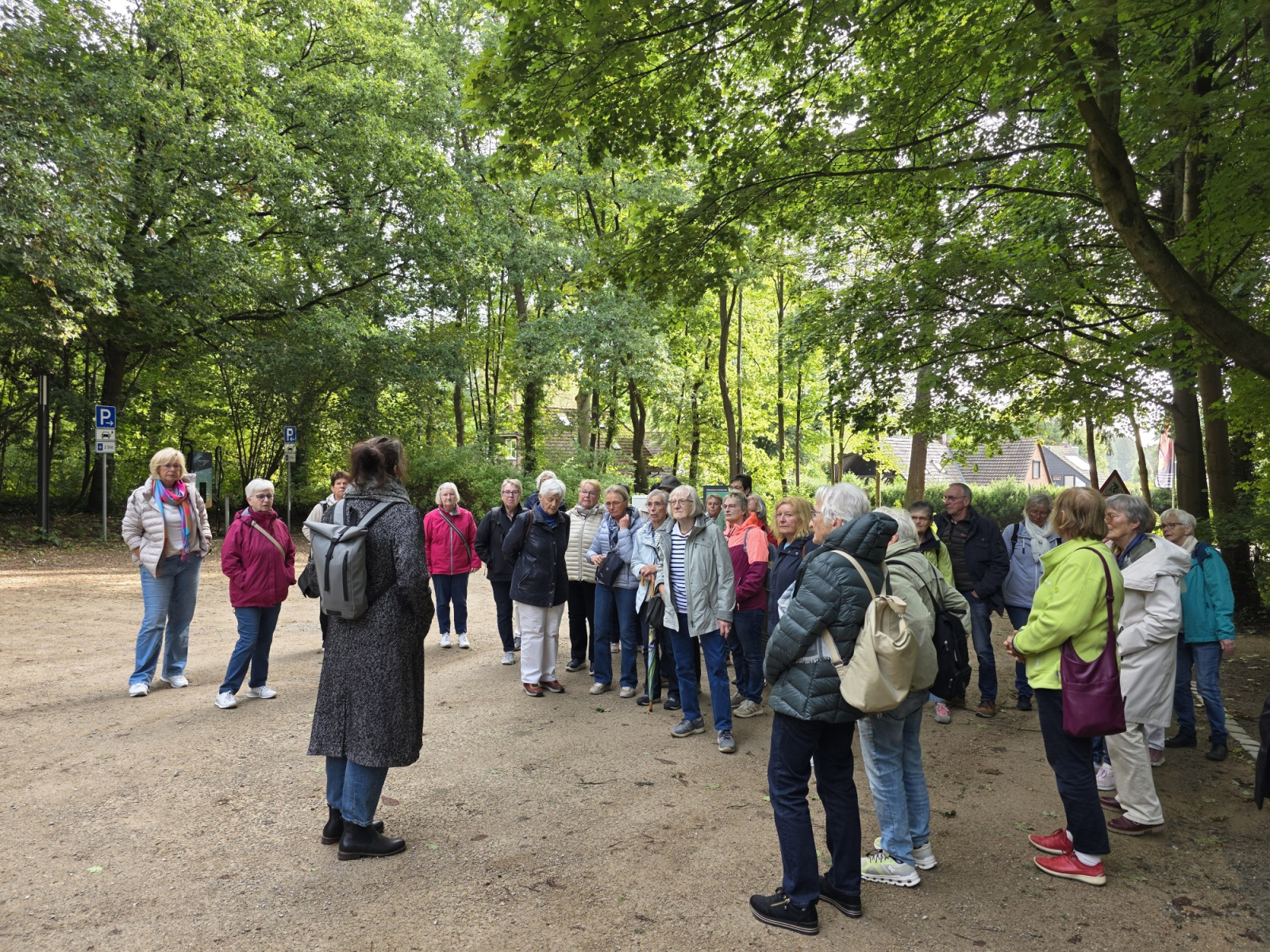 An einem sonnigen Frühherbsttag fuhren wir mit 40 kunstinteressierten Landfrauen nach Worpswede, um uns durch den Barkenhoff und die Große Kunstschau führen zu lassen und auf den künstlerischen Spuren von Paula Modersohn-Becker und ihren Weggefährtinnen zu wandeln. Nach einer wohlverdienten verlängerten Mittagspause in einem der tollen Cafés oder Restaurants des Künstlerdorfes und einem kleinen Bummel durch die schönen Geschäfte, trafen wir uns erneut zur Kunstbetrachtung in der Kunsthalle. Unsere Reiseleiterin Susanne Hinrichs führte diesmal durch die Ausstellung und erläuterte im Dialog mit den Landfrauen das Werk von Ottlilie Reyländer im Vergleich zu Paula. Es war ein Tag voller inspirierender Eindrücke im schönen Worpswede. Das wunderbare Wetter, welches wir mitgebracht hatten, nahmen wir wieder mit, denn als alle erschöpft im Bus saßen, weinte der Himmel über Worpswede. Derweil schmiedeten wir Pläne, wohin die nächste Kunstfahrt der Landfrauen gehen könnte.