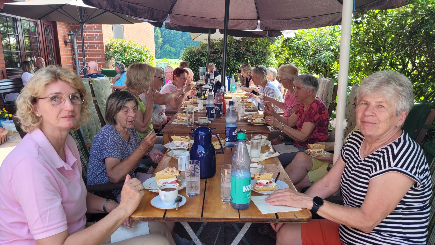 Zur Stärkung kehrten wir dann in das Landgasthaus Karnebogen in Freidorf ein, wo uns köstliche Erdbeertorte und frisch gebackener Butterkuchen serviert wurden.