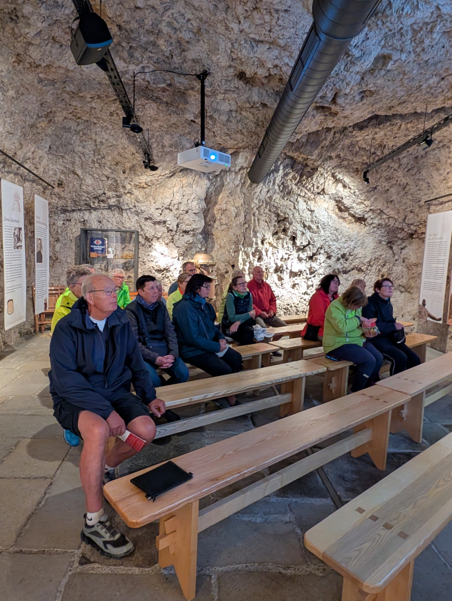 Sonntagmorgen wartete vor dem Hotel schon Dieter Horn, unser kundiger Reiseleiter. Er lotste uns zunächst nach Bad Reichenhall, wo wir das imposante Gradierwerk und die elegante Wandelhalle bestaunten; die salzhaltige Luft tat nach der langen Busfahrt richtig gut. Weiter ging es nach Berchtesgaden: Dieter erzählte lebhaft von Salzbergbau, Wittelsbacher Herrschaft und alpiner Architektur, während wir durch verwinkelte Gassen streiften. Nach einer Weißwurstpause bestiegen wir wieder den Bus Richtung Ramsau. Dort schossen wir das obligatorische Foto von der Pfarrkirche St. Sebastian vor gewaltiger Bergkulisse, wanderten anschließend in den Zauberwald und umrundeten teils den glasklaren Hintersee. Kaffee, Topfenstrudel und ein traumhafter Weitblick im Gasthaus Nutzkaser rundeten den Tag ab.