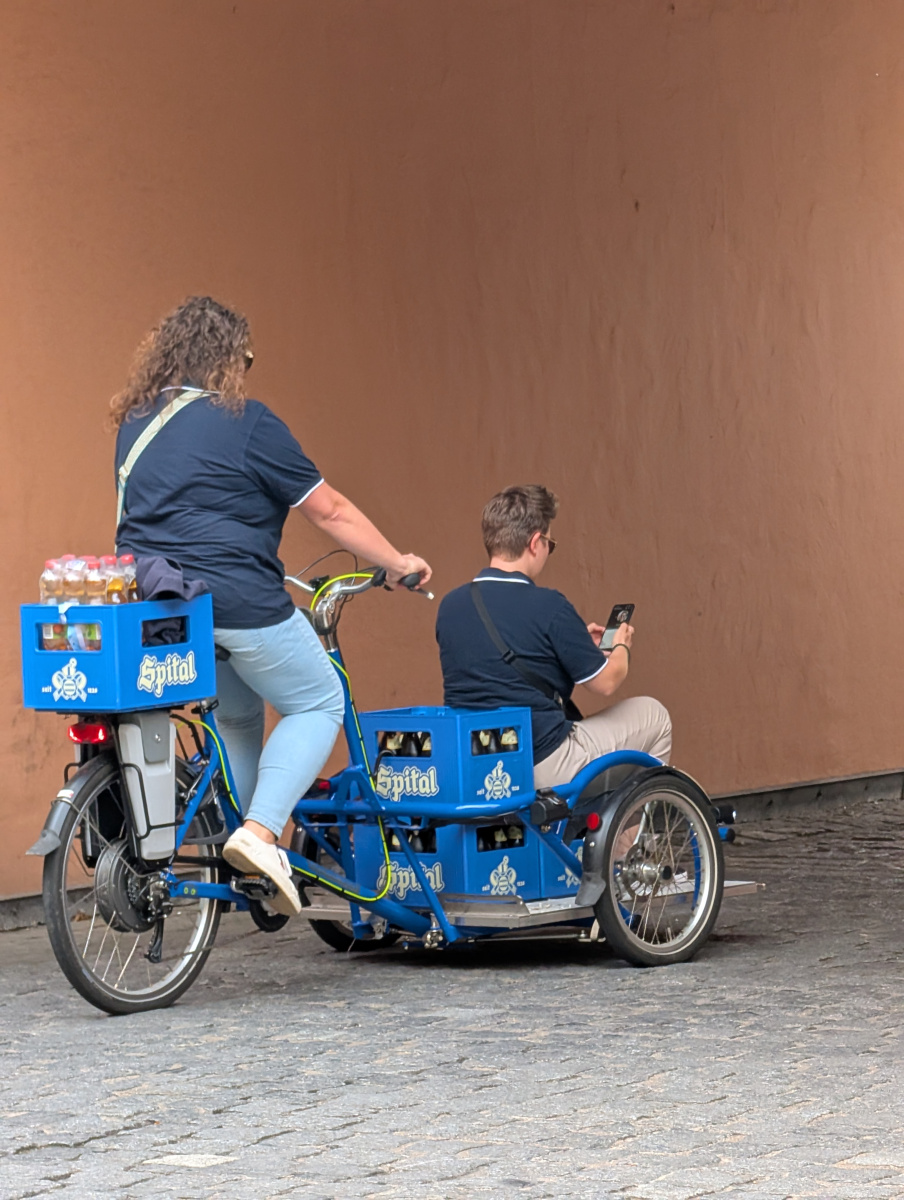 So ging es fast täglich: mal Regen, mal Sonne, mal unterstellen – und oft einfach weiterfahren. Am Freitag starteten wir schon morgens im Regen und kamen am Nachmittag völlig durchnässt in Kelheim an. Da unsere Koffer noch nicht eingetroffen waren, hieß es improvisieren: Plan B – rauf aufs Schiff und zum Kloster Weltenburg. Zurück an Land freuten wir uns umso mehr auf eine heiße Dusche und das gemeinsame Abendessen. Was für ein Tag!
