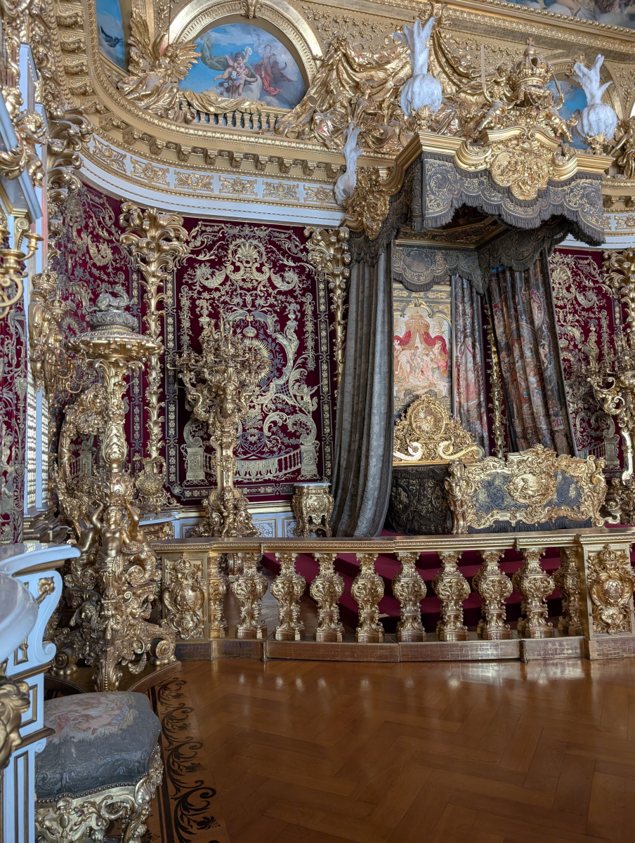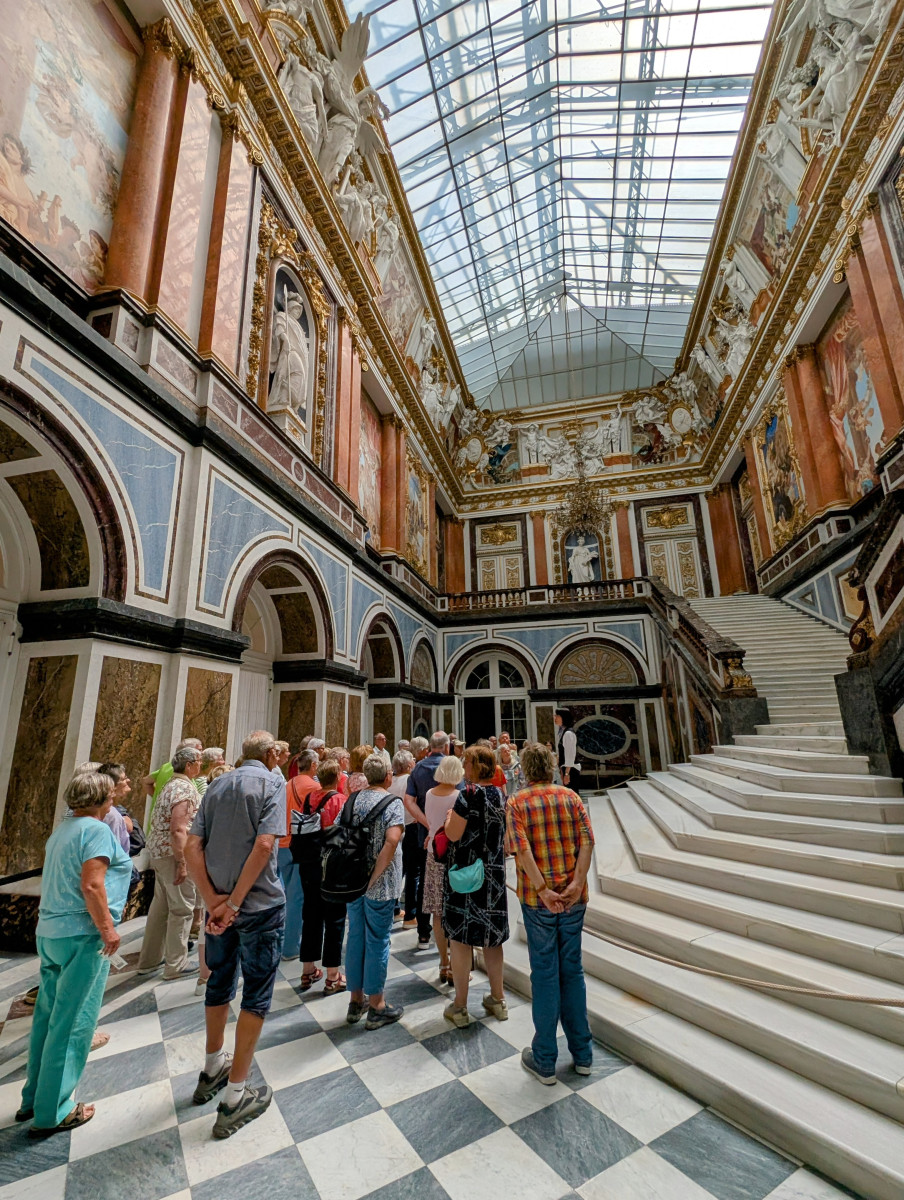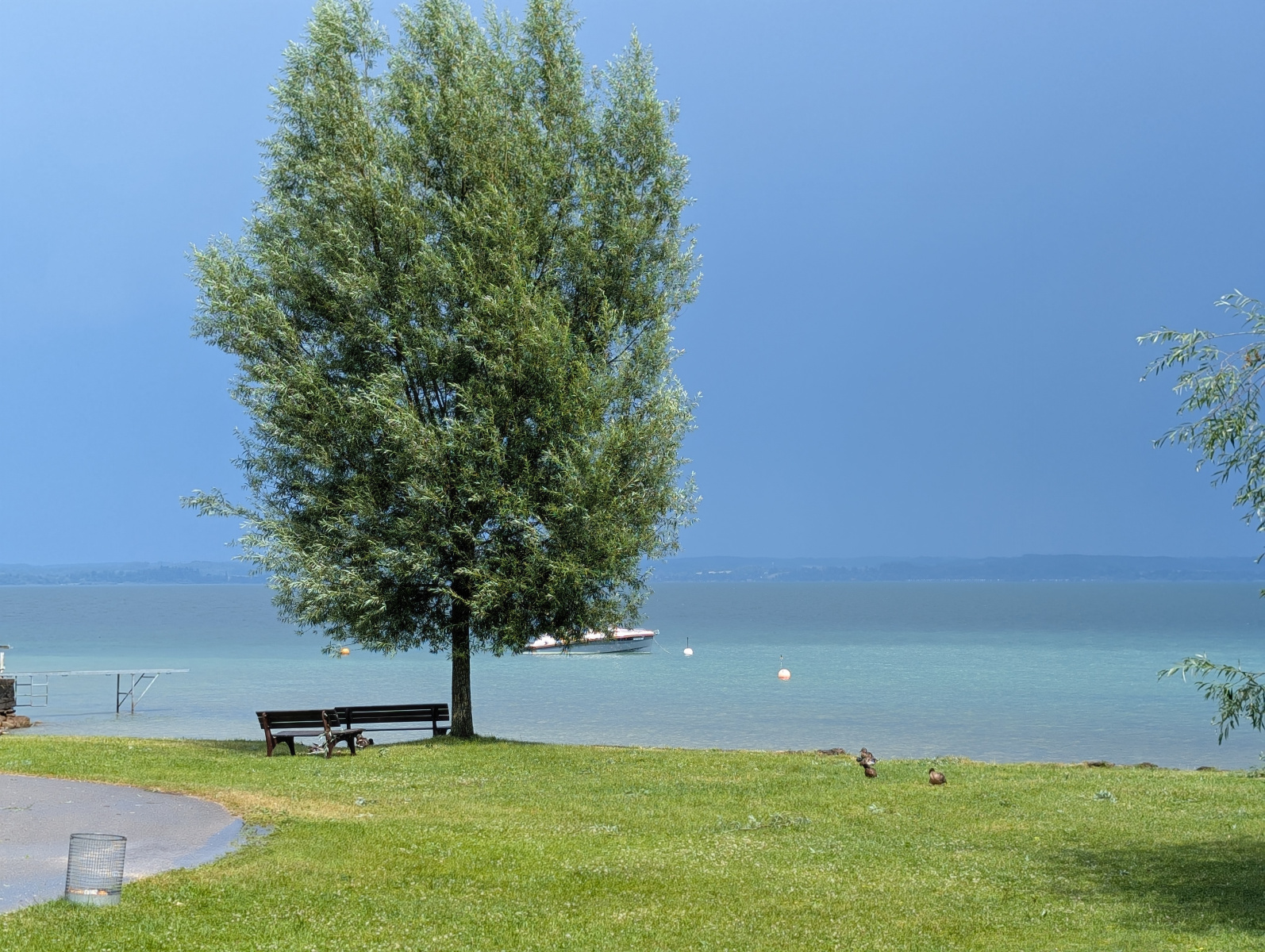 Vor der Abfahrt standen zwei Geburtstagsständchen an; unsere Akkordeonspielerin sorgte dabei für Stimmung. Über Prien setzten wir zur Herreninsel über und ließen uns im Palast Herrenchiemsee vom „Bayerischen Märchenkönig“ Ludwig II. verzaubern. Weiter ging es zur kleineren, stilleren Fraueninsel, deren Klosterkirche und Gärten idyllisch wirkten – bis ein heftiges Sommergewitter losbrach. Wir suchten Unterschlupf im Klosterladen, verkosteten selbstgemachten Klosterlikör und warteten geduldig. Kaum verzogen sich die Wolken, spazierten wir durch vom Regen glitzernde Gassen zurück zum Anleger. Die dramatische Stimmung sorgte für eindrucksvolle Erinnerungsfotos.