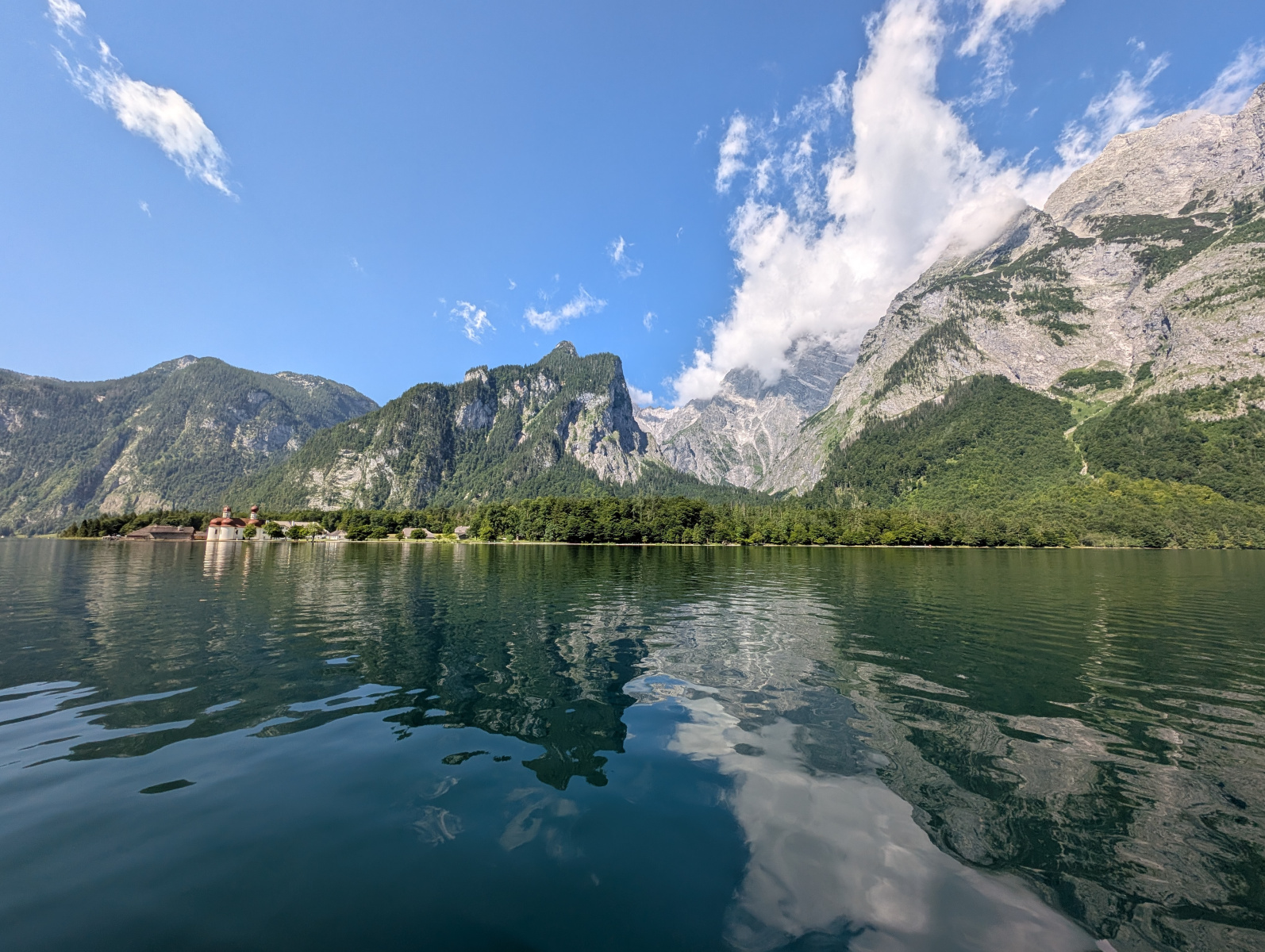 Frühaufsteherglück: Weil kaum Betrieb war, ergatterten wir ein Schiff vor Plan. Kaum tuckerte es über den smaragdgrünen Königssee, stimmte der Schiffsführer das legendäre Trompetenecho an – dreifach hallte der Klang von den steilen Felswänden wider und erzeugte Gänsehaut. In St. Bartholomä teilte sich die Gruppe: Die Sportlichen wanderten zum Eiskapellegletscher, die Genießer kosteten geräucherten Saibling und Apfelstrudel. Zurück in Schönau gönnten wir uns einen Spätnachmittags-Spritz und ließen den vielleicht schönsten Tag der Reise mit müden Beinen, aber strahlenden Gesichtern ausklingen.