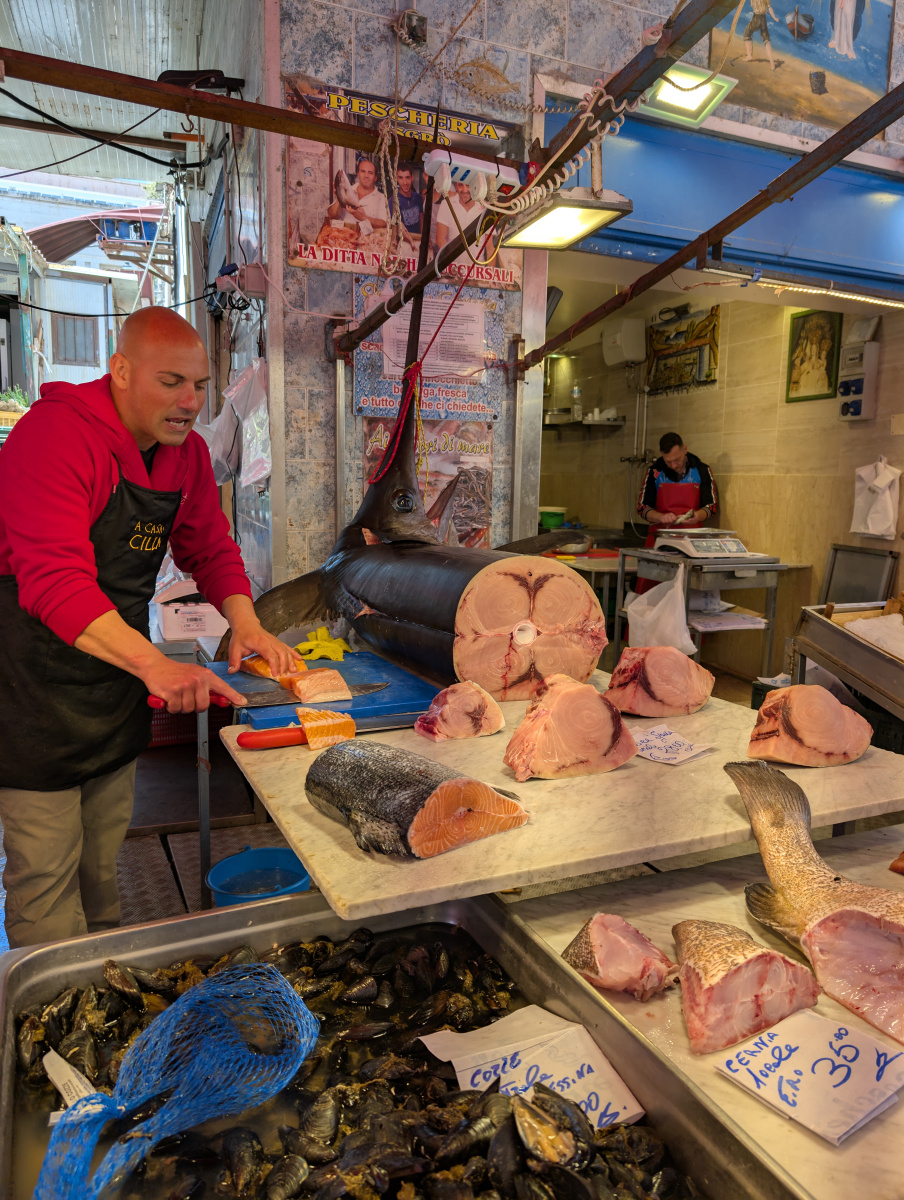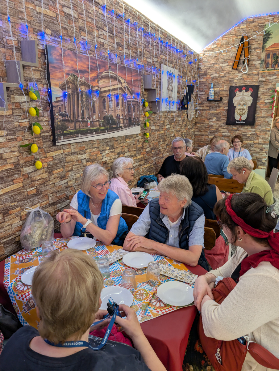 Am letzten Tag fuhren wir zurück nach Catania, wo wir ein letztes Mal die sizilianische Lebensfreude atmeten inmitten des Fischmarktes. Beim gemeinsamen Mittagessen im Zentrum genossen wir Leckerein und siesta-würdiges Gelato, während wir die Stimmung auf der Piazza spürten. Ein letzten Blick auf den Ätna, ein letzter Schluck sizilianischen Weins – dann hieß es Abschied nehmen von Don Camillo, Angelo und der Insel, die uns mit all ihren Facetten verzaubert hat. Noch heute klingen die Lieder, das Lachen und die Düfte dieser Tage nach, und in unseren Herzen klingt das Ciao der Sizilianer weiter. Wir sind dankbar für jedes gemeinsame Erlebnis – und schon jetzt wissen wir: Sicilia, ti amiamo!