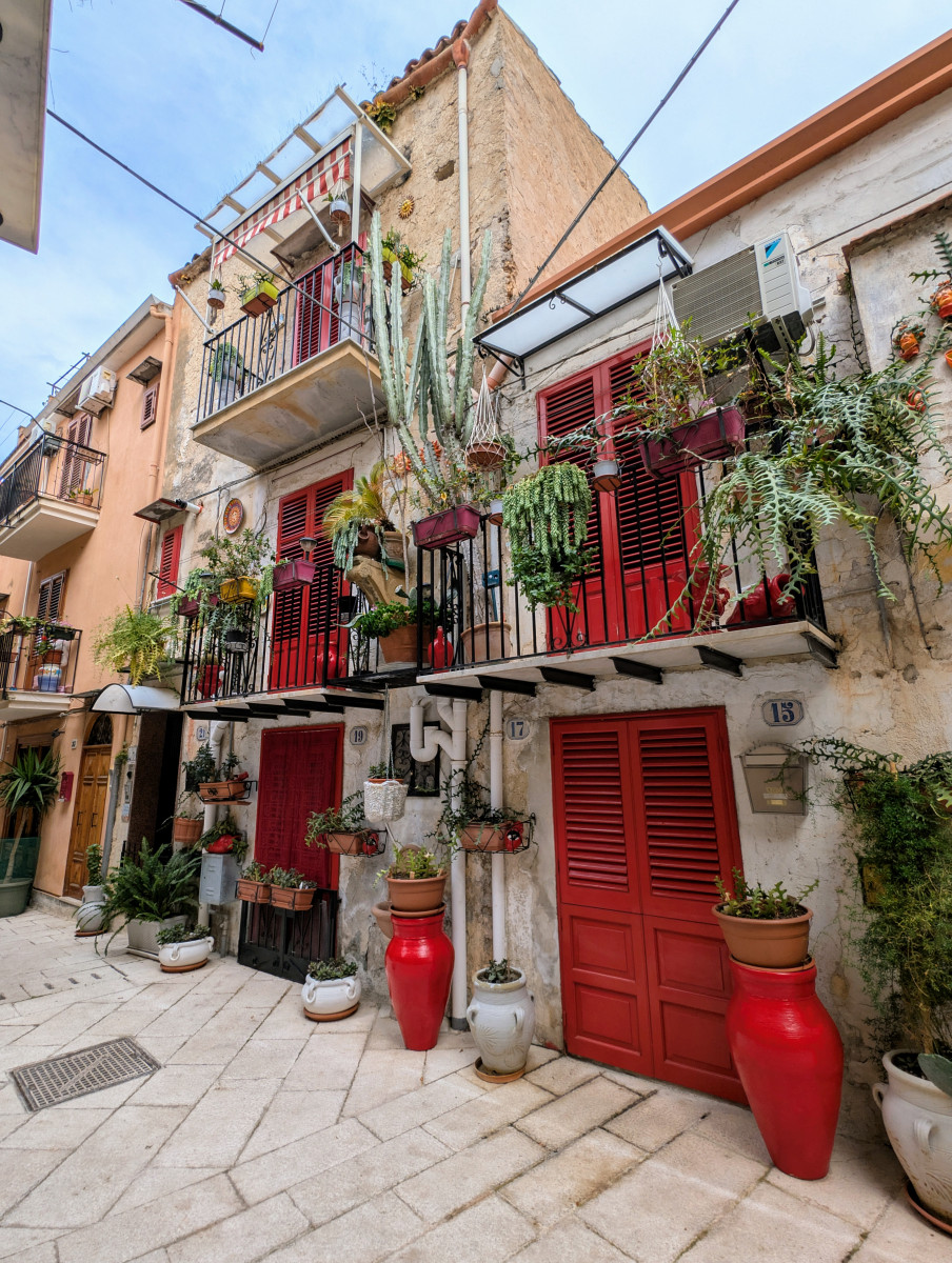 Am sechsten Tag erreichten wir die quirlige Metropole Palermo. In den engen Gassen des Zentrums empfing uns ein Kaleidoskop aus Farben, Gerüchen und Klängen. Wir besuchten die majestätische Kathedrale, staunten in der Cappella Palatina über ihre vergoldeten Decken und ließen uns die Geschichte des Normannenpalastes von Don Camillo lebhaft erzählen. Ein Bummel über einen historischen Markt brachte uns die sizilianische Tradtion nahe: Zur Mittagszeit teilten wir eine echte neapolitanische Pizza und hoben unser Bierglas auf das Glück, hier zu sein. Nur wenige Kilometer südlich thronte Monreale mit seinem Dom – die über 8 000 qm goldener Mosaiken entführten uns in biblische Erzählungen, und der Kreuzgang begeisterte mit zarten Säulen und filigranen Kapitellen. Das Landhaus Baglio Santa Croce, unser heutiges Nachtquartier, lud mit seinem historischen Ambiente zum Träumen ein.