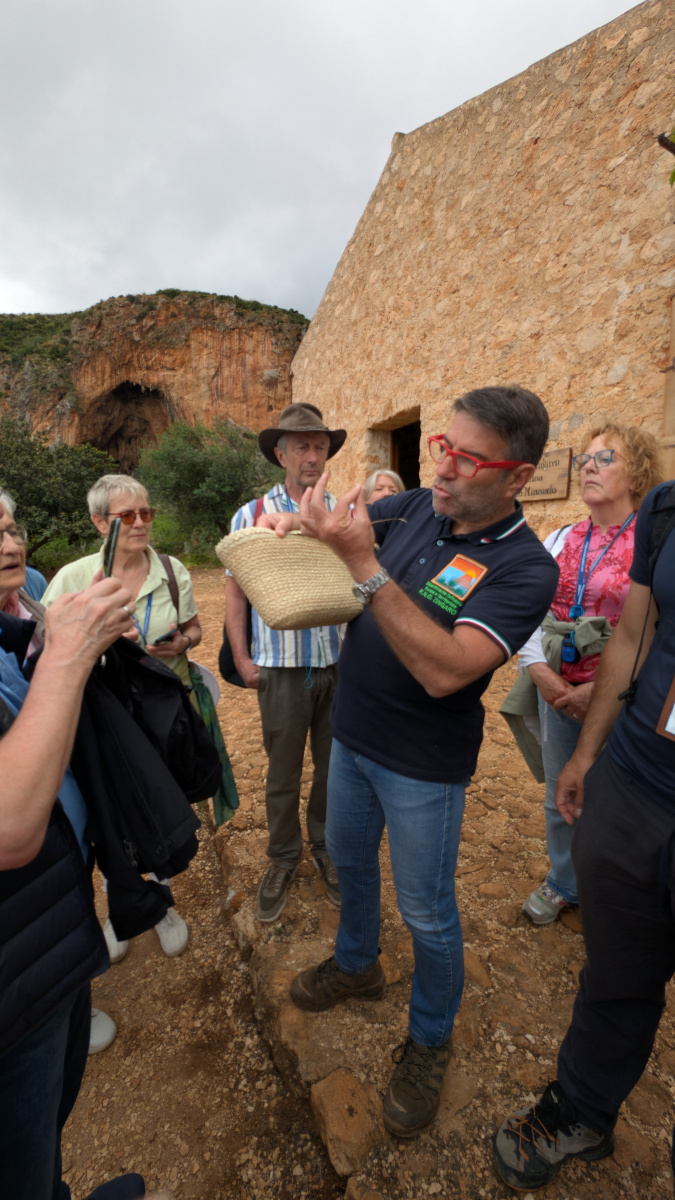 Der fünfte Tag führte uns tiefer in die Bergwelt der Sikaner. Unser erstes Ziel war die Einsiedelei der Heiligen Rosalia in Santo Stefano – ein spiritueller Ort inmitten eines duftenden Naturschutzgebietes. Schon am Vormittag genossen wir hier unseren ersten Wein. Weiter ging es nach Cammarata, dessen Traditionen rund um Pecorino und Ricotta legendär sind. In einer kleinen Käserei erlebten wir hautnah, wie die würzigen Käsesorten entstehen, und verkosteten mit großem Appetit. Am Abend verwöhnte uns Casale Margherita mit einem üppigen Menü aus lokalen Spezialitäten. Bis auf das Gericht mit Kutteln – das einige von uns skeptisch beäugten – war alles köstlich und wird uns noch lange auf der Zunge nachklingen.