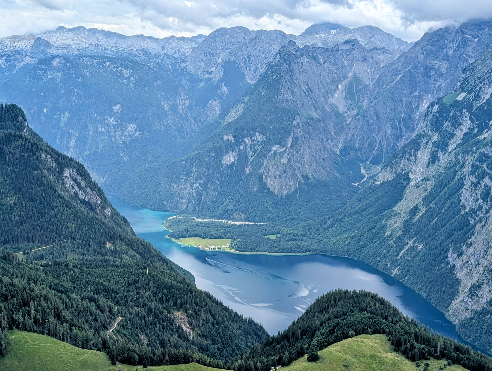 Frühaufsteherglück: Weil kaum Betrieb war, ergatterten wir ein Schiff vor Plan. Kaum tuckerte es über den smaragdgrünen Königssee, stimmte der Schiffsführer das legendäre Trompetenecho an – dreifach hallte der Klang von den steilen Felswänden wider und erzeugte Gänsehaut. In St. Bartholomä teilte sich die Gruppe: Die Sportlichen wanderten zum Eiskapellegletscher, die Genießer kosteten geräucherten Saibling und Apfelstrudel. Zurück in Schönau gönnten wir uns einen Spätnachmittags-Spritz und ließen den vielleicht schönsten Tag der Reise mit müden Beinen, aber strahlenden Gesichtern ausklingen.