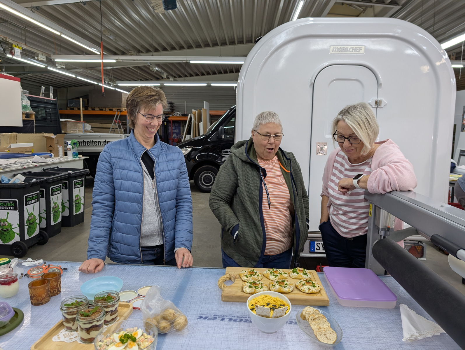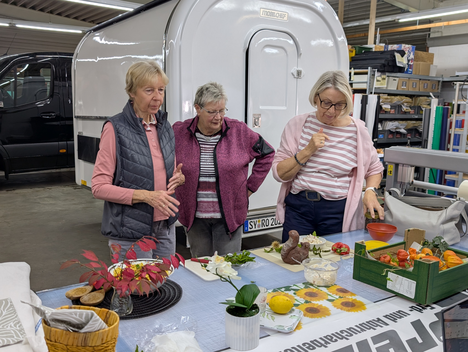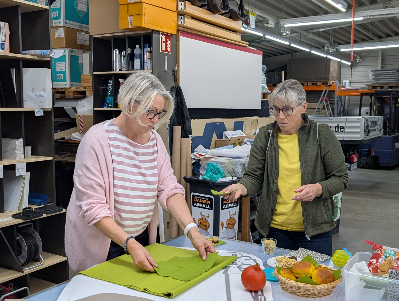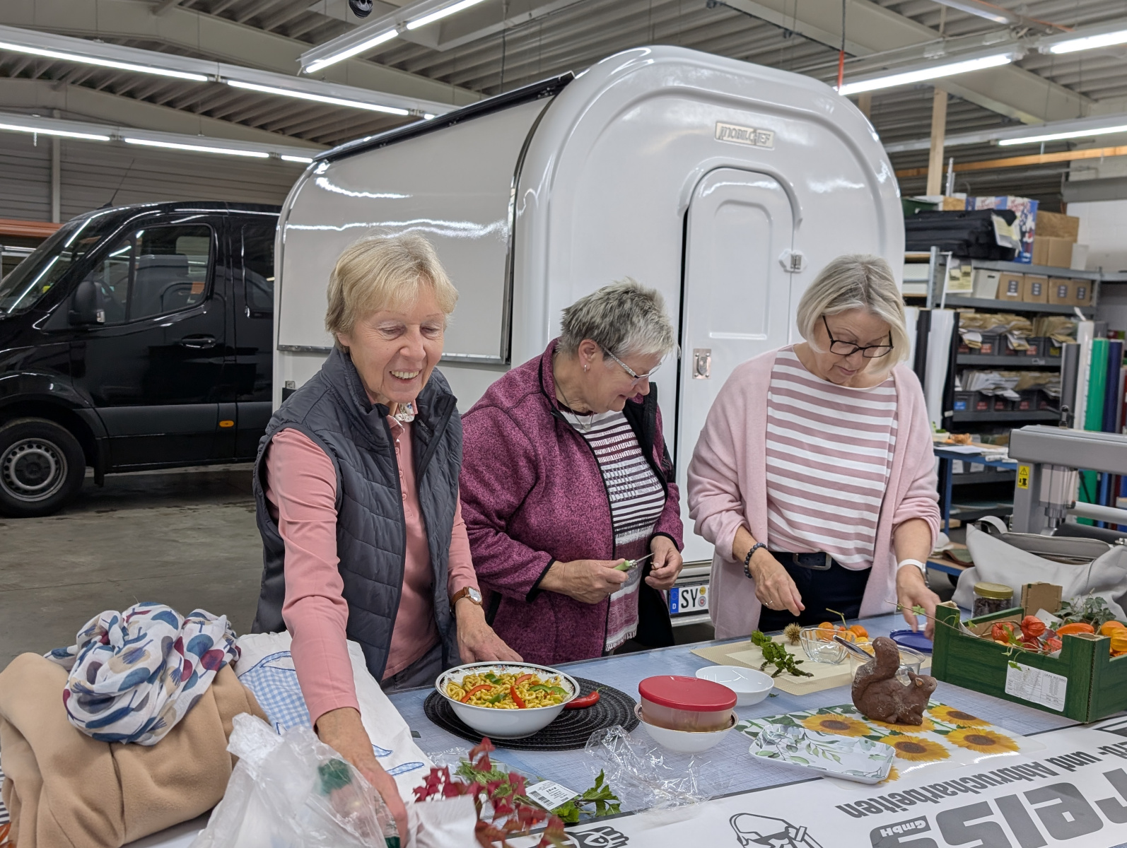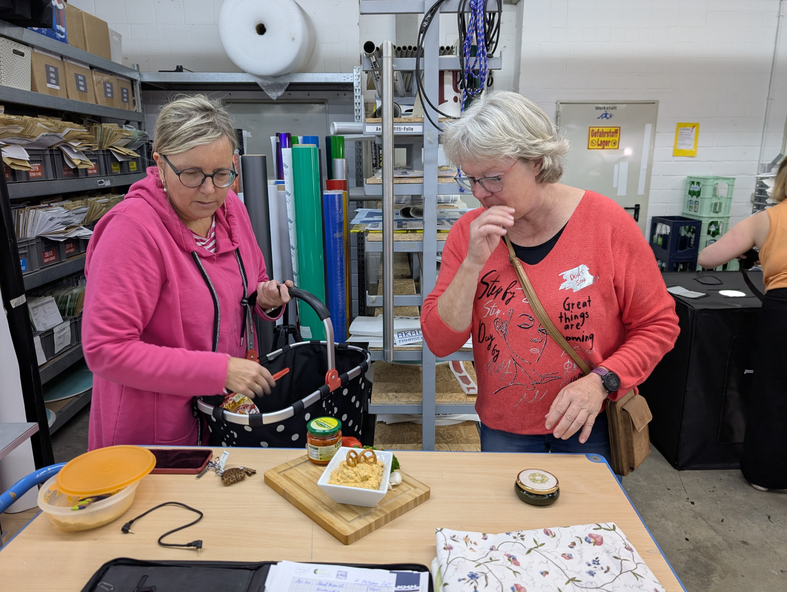 Im Anschluss an Kaffee und Kuchen gab es eine Führung durch die Räumlichkeiten, die wöchentlich mithilfe von 44 Mitarbeitern Essen an bedürftige Menschen verteilt. Nahrungsmittel dürften dafür nur gesammelt, jedoch nicht zugekauft werden. Die steigende Anzahl an Menschen, die Kunden der Tafel werden ist kaum mit den Nahrungsmitteln zu versorgen, die abgegeben und eingesammelt werden. Gemeinsam überlegten die Aktiven beider Vereine, wie den Menschen besser geholfen werden kann. Wenn nur einige der vielen Ideen umgesetzt werden können, wäre schon vielen geholfen.